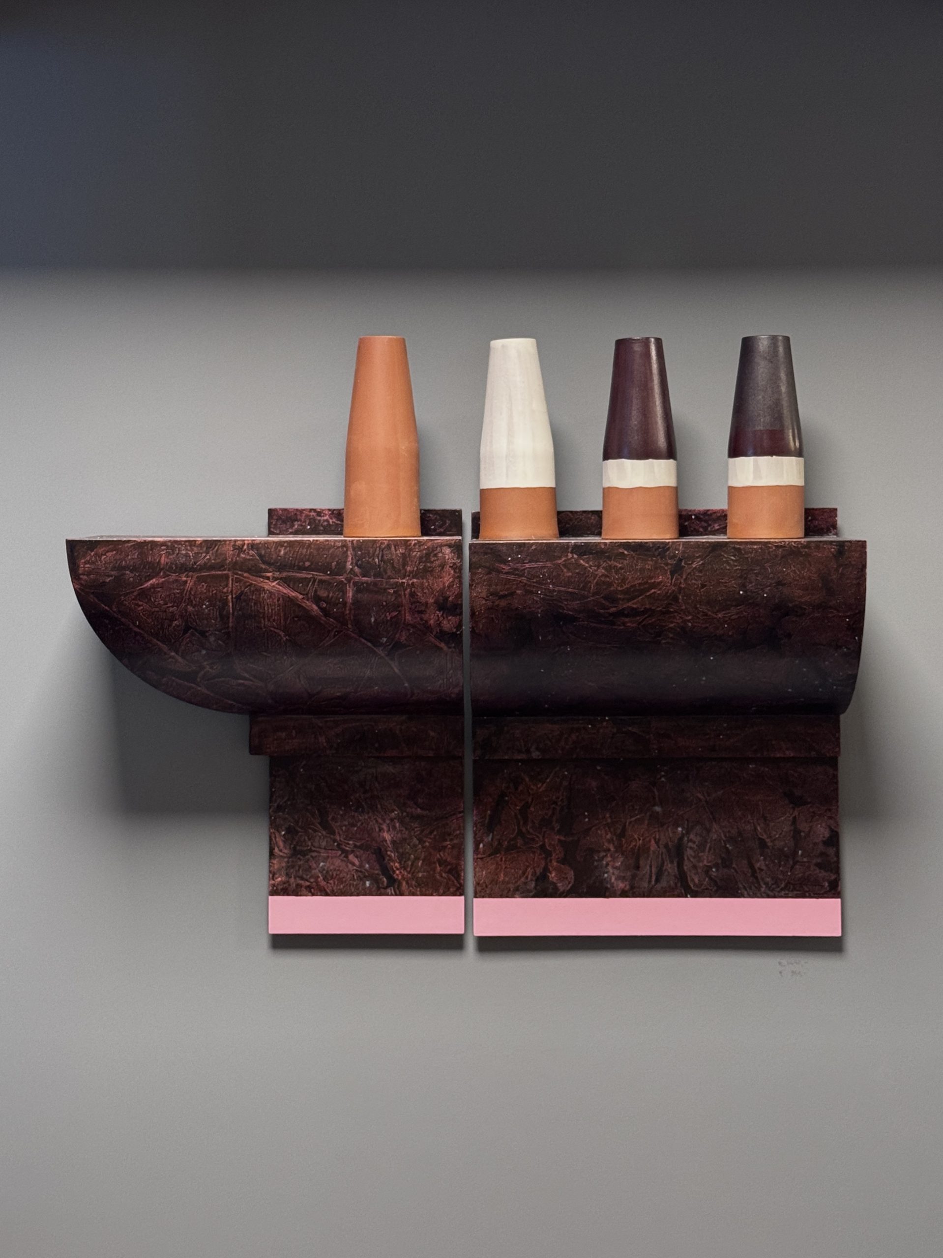 Vanuit een onderzoek naar klassieke technieken en gereedschappen, verschoof de aandacht naar kleur, textuur en gelaagdheid. Door te spelen met gereedschappen, technieken en materiaal ontstaan gelaagde werken die balanceren tussen herkenbare imitatie en vrije interpretatie. De conclusies zijn gevangen in grafische studies en ruimtelijke objecten, die in hun vorm de verbinding leggen met de historische ornamentele toepassing van het ambacht binnen het interieur.
