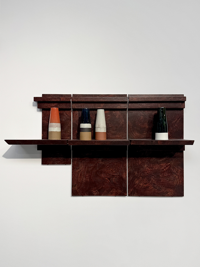 Vanuit een onderzoek naar klassieke technieken en gereedschappen, verschoof de aandacht naar kleur, textuur en gelaagdheid. Door te spelen met gereedschappen, technieken en materiaal ontstaan gelaagde werken die balanceren tussen herkenbare imitatie en vrije interpretatie. De conclusies zijn gevangen in grafische studies en ruimtelijke objecten, die in hun vorm de verbinding leggen met de historische ornamentele toepassing van het ambacht binnen het interieur.